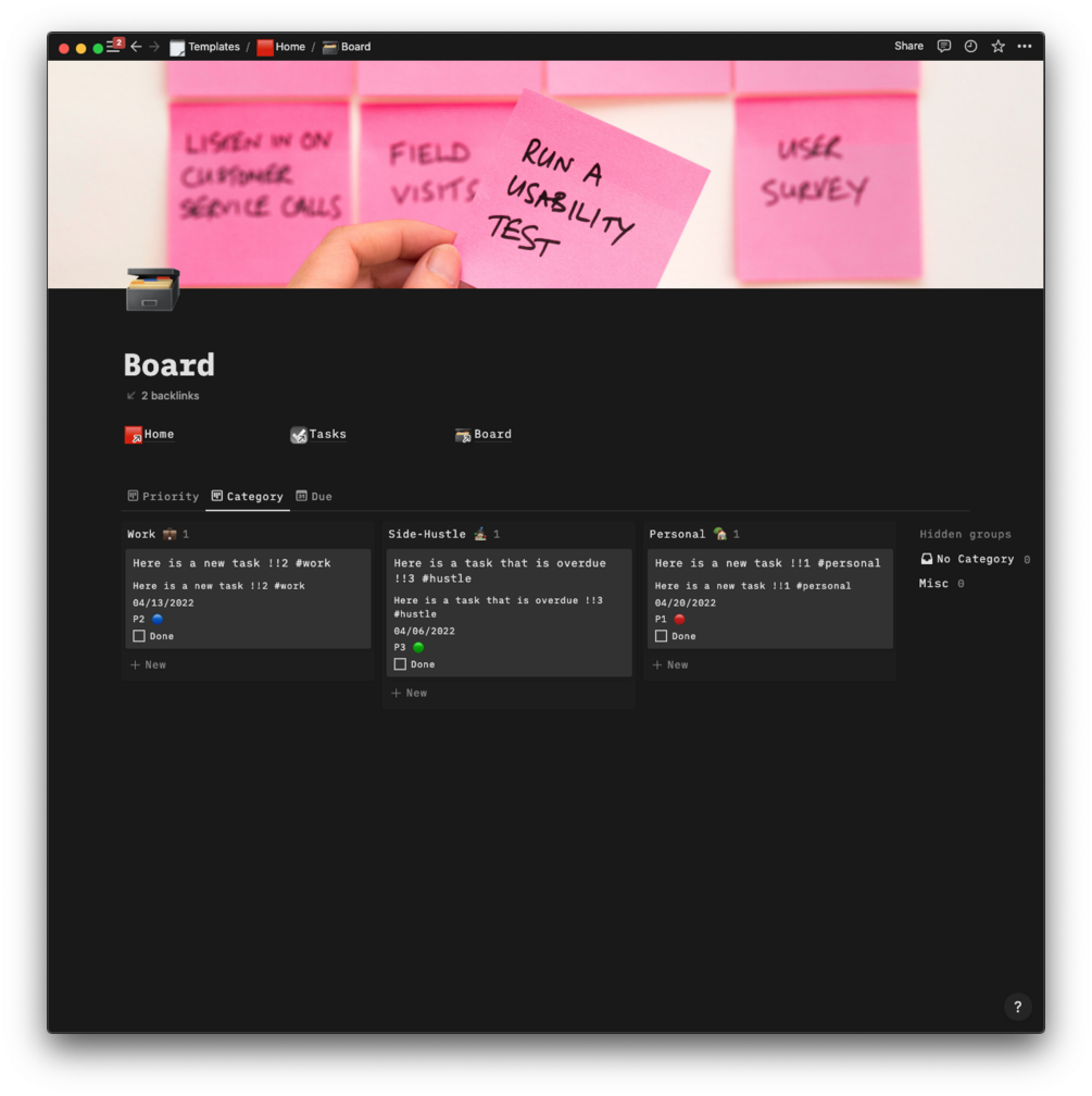 - Visualize tasks sorted by category, priority or due date